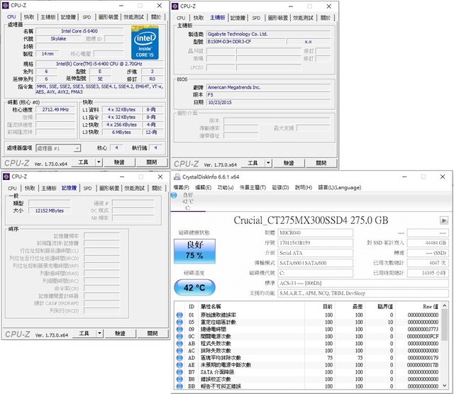 i5-6400、b150m-d3h ddr3、mx300 275g