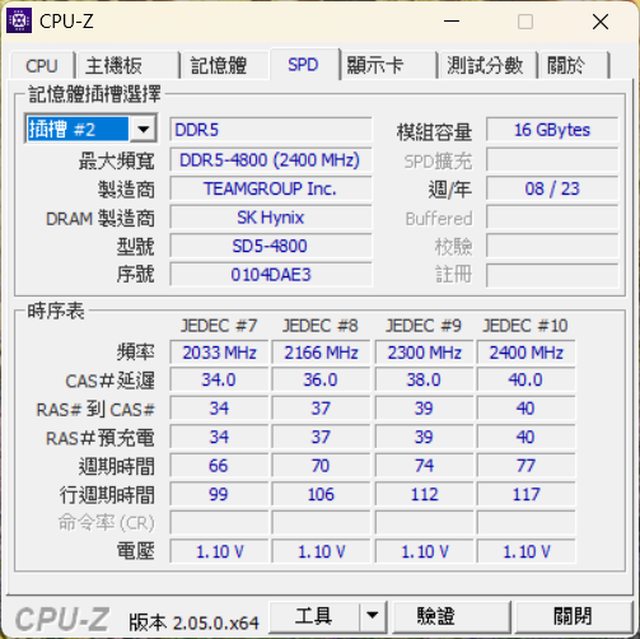 ◎硬體型號: TEAM十銓 SO-DIMM DDR5-4800 32G(16G*2)