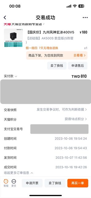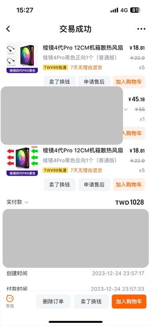 2. 2023/12 淘寶購入無保 更換風扇故出售