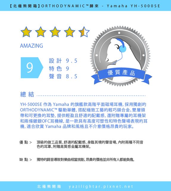 好,但花一點時間體驗 YH-5000SE 獨具特色的聲音風格也絕對是值得,強烈推薦給所有