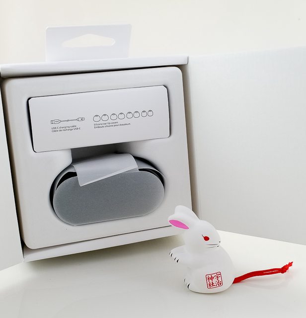 ,但體積縮小為前一代的 1/2 倍,充電用的 USB Type-C 插孔位於充電盒後方,同時支