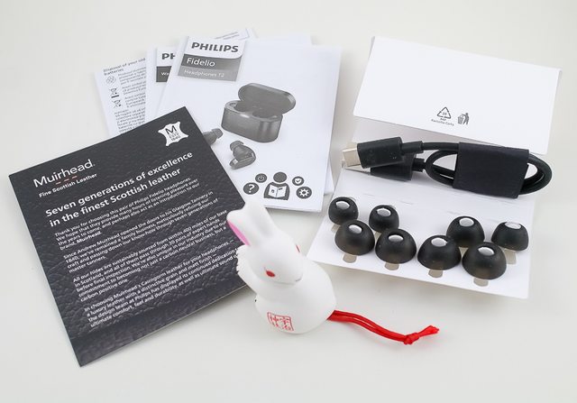 一對)耳塞之外,還附有一條用於充電的 USB Type-C 充電線,另外就是 Muirhead 皮革