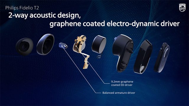 ● 平衡電樞單體搭配石墨烯塗層動圈,Fidelio T2 呈現飛利浦獨特音感,緊湊有控制的