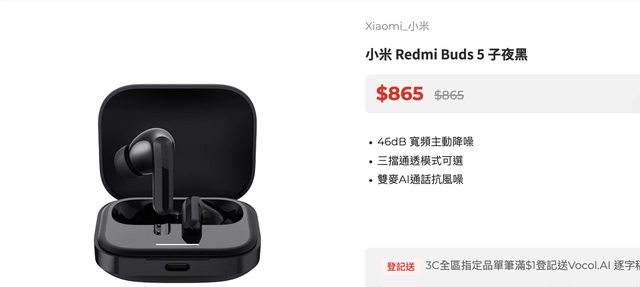 Redmi Buds 5(售價:865)
