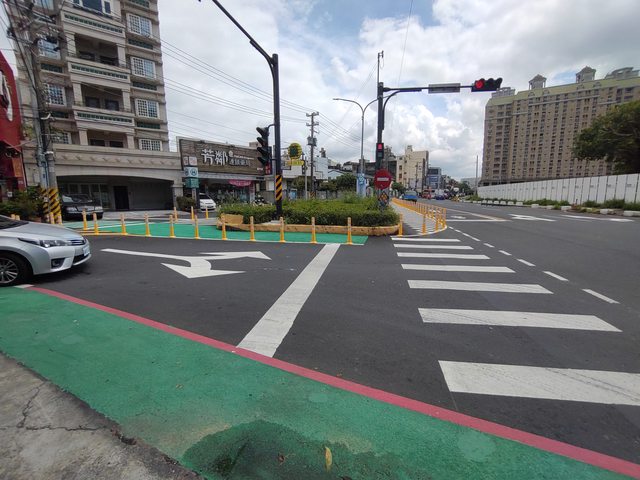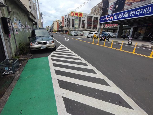 喔喔對 還有這邊 有一小段綠色人行道 原來還有這種故事
