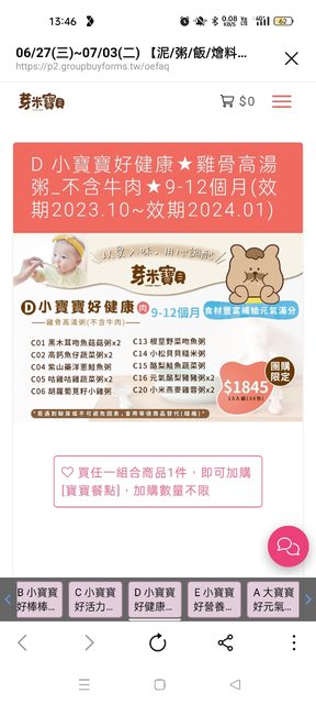 (有詢問廠商,寶寶粥有效期限8個月,到手的日期會有4個月以上的有效期限,但網站內