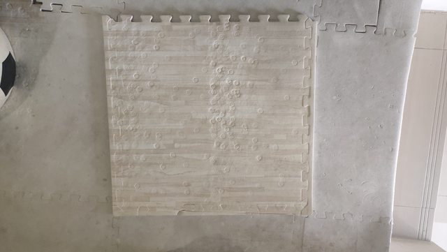 60公分見方的木紋巧拼大約50-60片,使用2年半左右,有部分變色,或是有凹洞刮痕,不