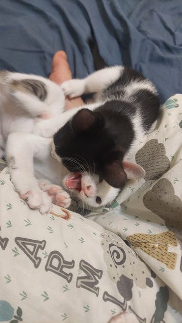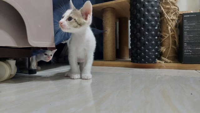 貓咪花色:白底虎斑和 賓士 貓咪性別:都有 貓咪個性:慢熟、活潑好動、親人都有