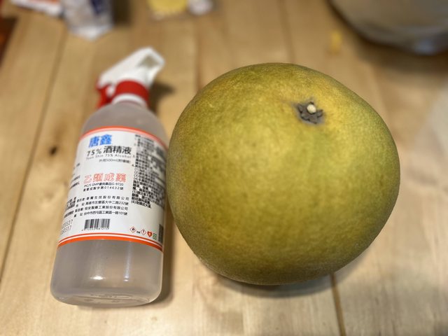 超~級~大~白柚,麻豆來的,旁邊的酒精瓶是比例尺,朋友給了5顆但真的吃不完