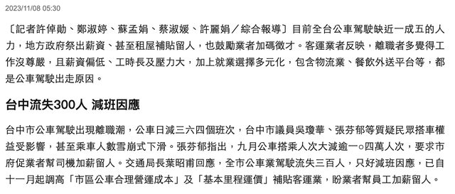 現在全台公車司機大缺工 連直轄市台中桃園都找不到司機 要減班了