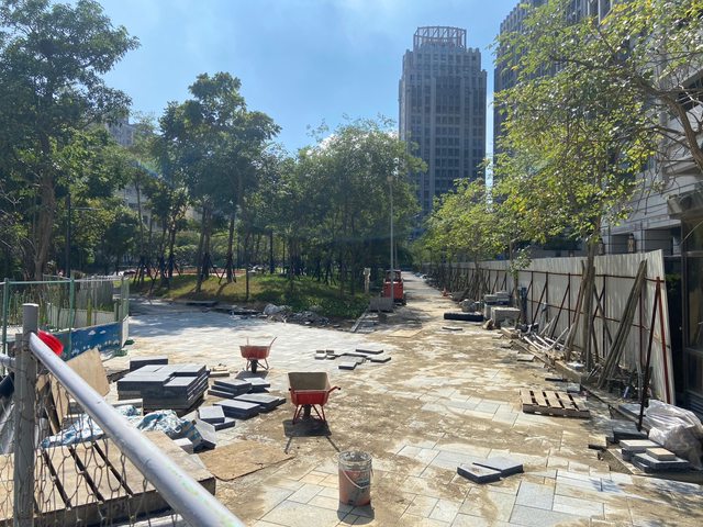: : 98%,現公園出入口區域也正進行最後施工,驗收完成後預計12月開放使用,此外,串連
