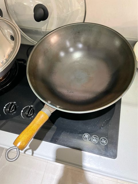 因不常煮菜導致難以養鍋,雖看起來黑黑的但已經洗的很乾淨囉,不介意痕跡再做領取。