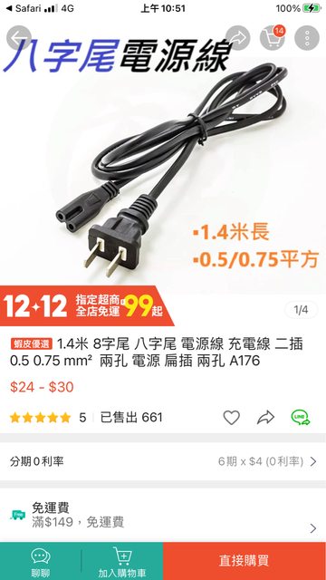 標題[徵求] 8字尾電源線一條