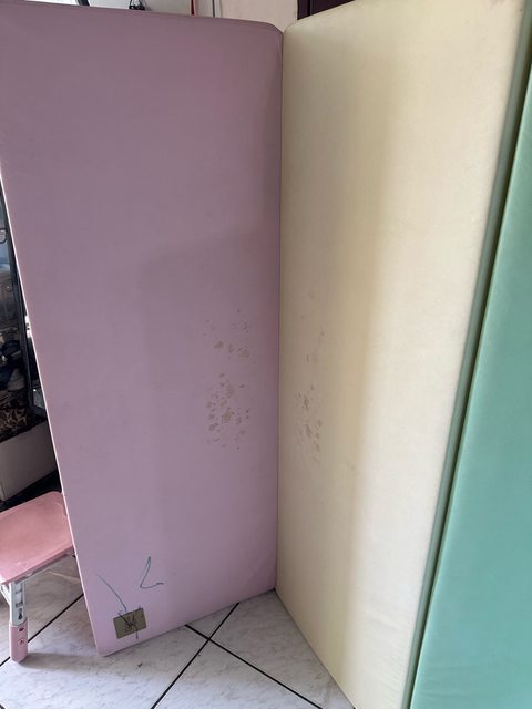 了收起來後因為潮濕而有脫皮、接縫,家裡有薄的遊戲墊就可以墊上去加厚增加緩衝