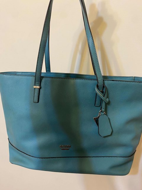 3.藍綠色GUESS托特包,有使用痕跡