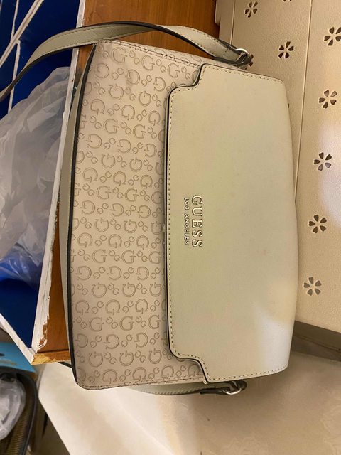 2.灰白色GUESS斜背包,有使用痕跡
