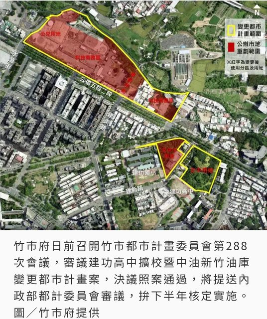 竹市府日前召開竹市都市計畫委員會第288次會議,審議建功高中擴校暨中油新竹油庫變更