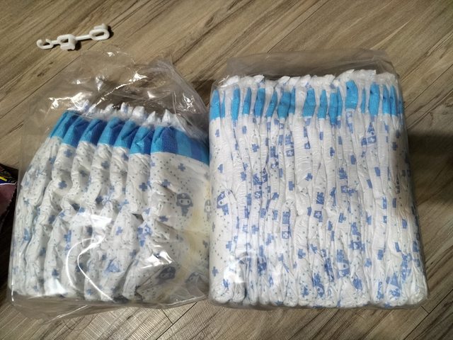 每袋尿布裡分兩小袋包裝,已拆封的尿布裡,有一小袋已拆開使用過,目測尿溼顯示正常