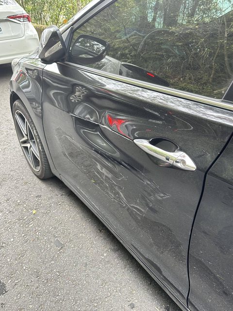 回來牽車時發現車子駕駛座的門上遭撞