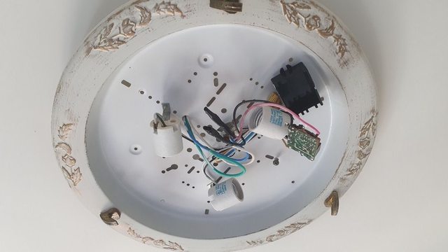 這個傳統吸頂燈,直徑約41公分,可裝三個燈泡跟一個夜燈小燈泡。狀況良