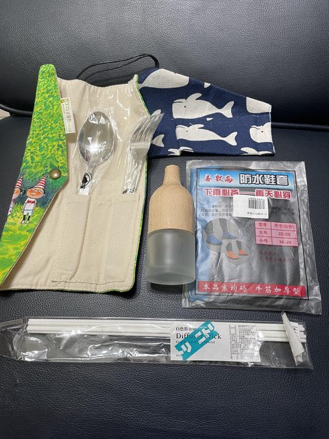 物品項目:擴香瓶、幾米環保餐具、防水鞋套