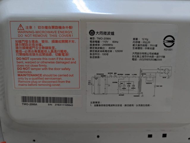 1)大同微波爐