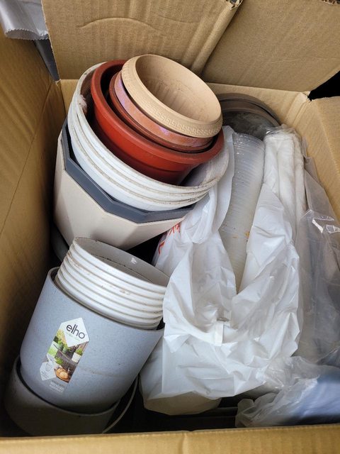 一大箱圓藝資材!內含噴水壺、許多花盆(有幾個很貴的><) 、透明育苗盆一大串、做美