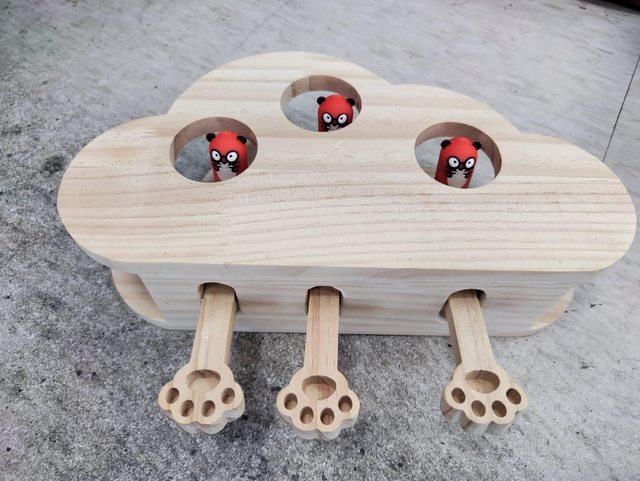 6.原木打地鼠貓玩具-3孔 家裡貓小孩都不玩送出