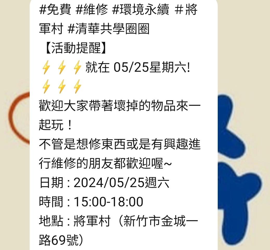 推 suii : 修小家電可送將軍村維修工作室 05/13 14:33