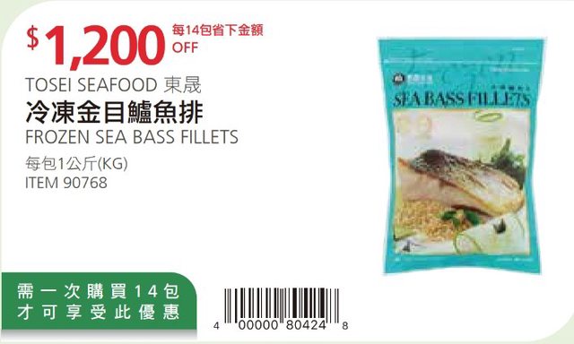 #冷凍金目鱸魚排,折扣後$350