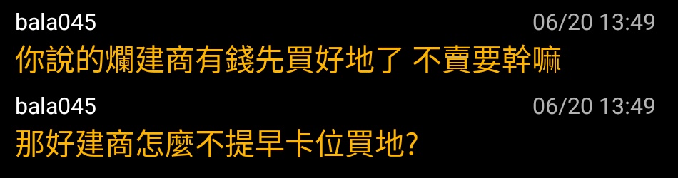 → hushiang : 說土地被爛建商卡著不得不買,笑死 07/17 21:10