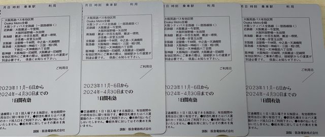1. 讓售品項:大阪周遊卡一日券*4張