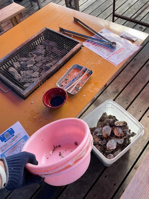 烤的方式基本上大同小異,有了松島的用餐經驗後,這回更加熟練,垃圾桶直接放在腳中