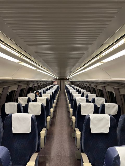 自由席採取的是傳統的3-2配置。在指定席加價不多的情況下,選擇「類綠色車廂」的2-2
