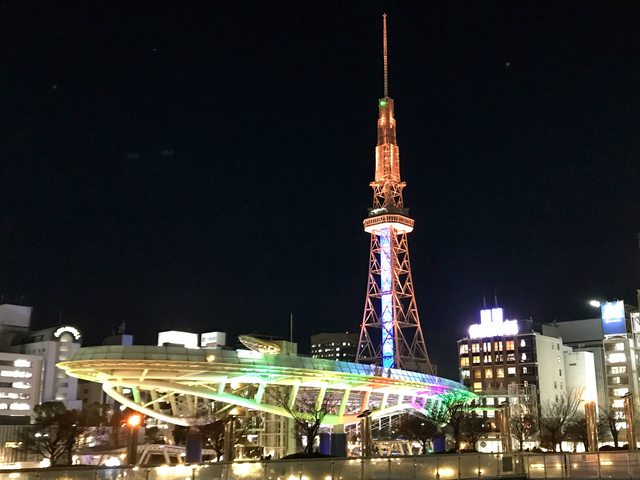 ,是拍攝名古屋電視塔的好地方,整個建築還有燈光變化。
