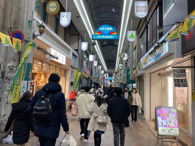 離開旦過市場後,過馬路就是魚町銀天街和中央商店街,這兩條商店街呈現十字型,從車