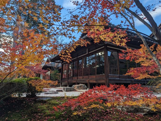 上近期比較熱門的應該還是書院從裡往外拍,以及從外面拍書院這兩個角度。紅葉期間,