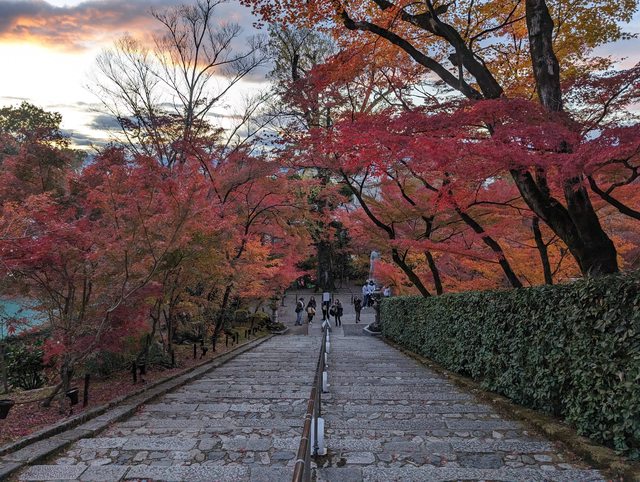 時間將近日落,不過餘輝映射下,紅葉幾乎在每個轉角都可以看見,我終於理解為什麼永