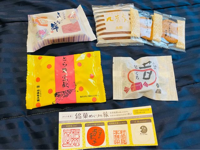 而每間店都走完會拿到這些伴手禮,可以先把拿到的吃看看再決定要買哪家的伴手禮。