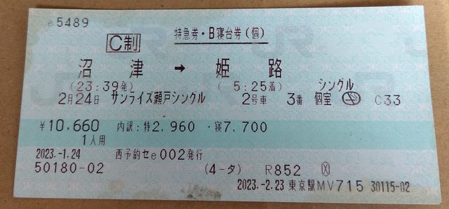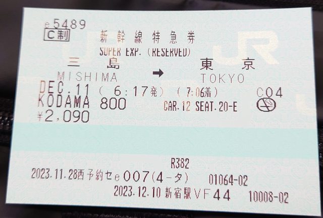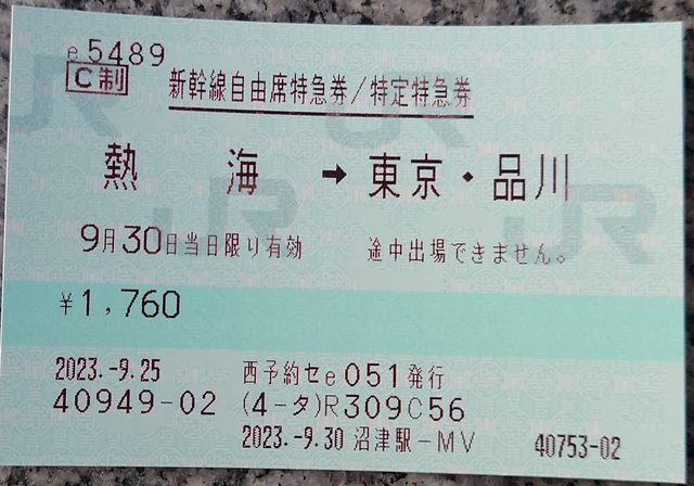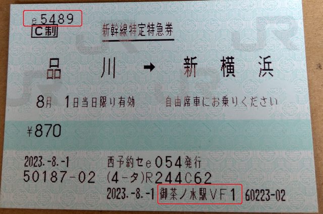 JR東海東京和品川駅指定席券売機e5489領券畫面
