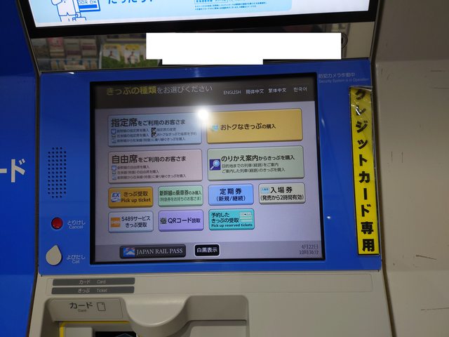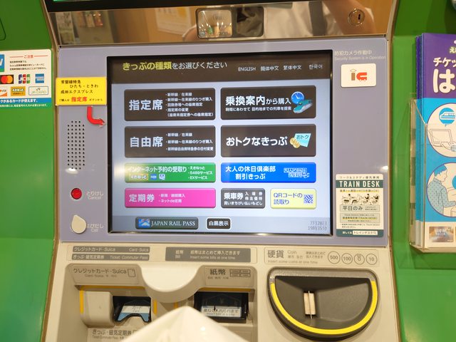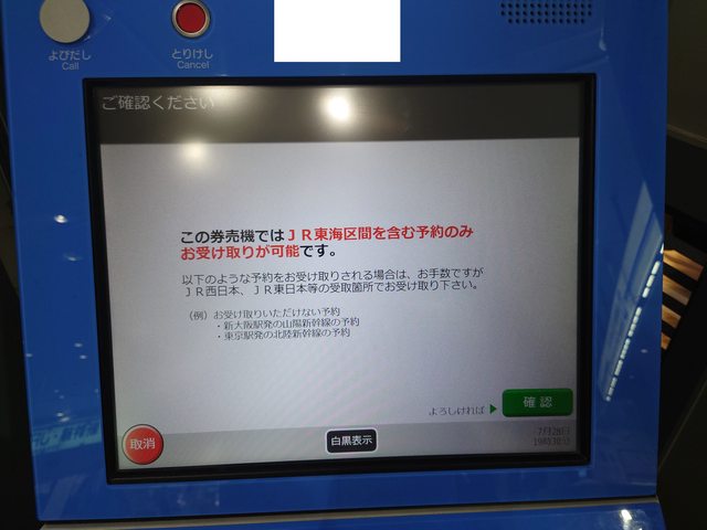 3.若含東海區段,JR東海的指定席券売機