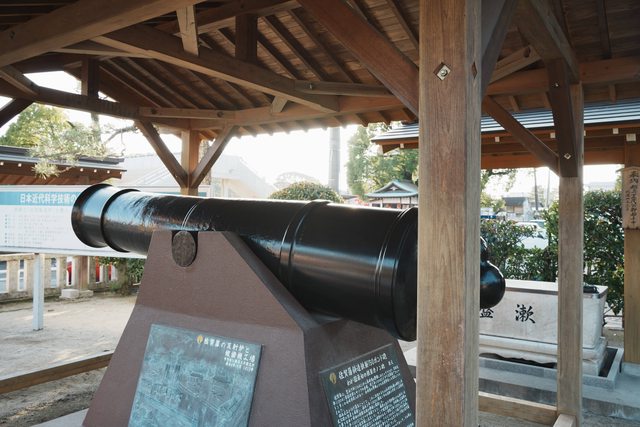 手水舍旁放著大砲,恐怕也是日本難得一見的畫面