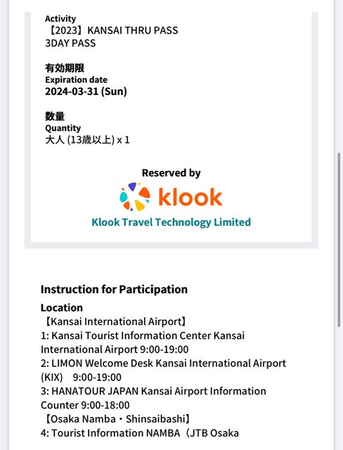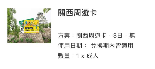 標題[讓售] 關西周遊卡 三日劵 兌換憑證