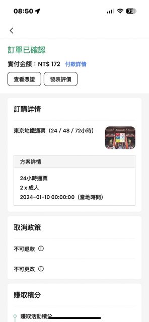 標題[讓售] 東京Tokyo Subway 24 hour Ticket