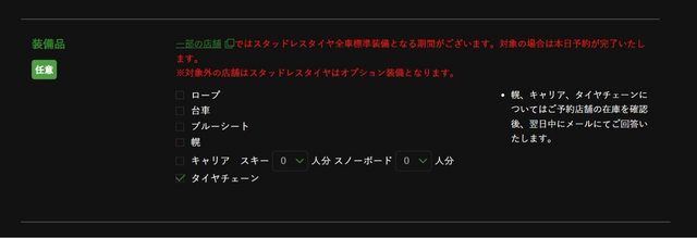 二月初要去北海道自駕 打算從函館開到千歲 因為上網爬文後發現日文網頁比較便宜 所以也辦了日文會員 但還是跟中文有些不同處想請問 1. 目前是指定租小鴨 因為台灣也開的習慣 但並沒有看到有スタッドレスタイヤ的選項 這邊只有看到雪鍊這個可以選 如圖 https://i.imgur.com/sFkM5Dq.jpg