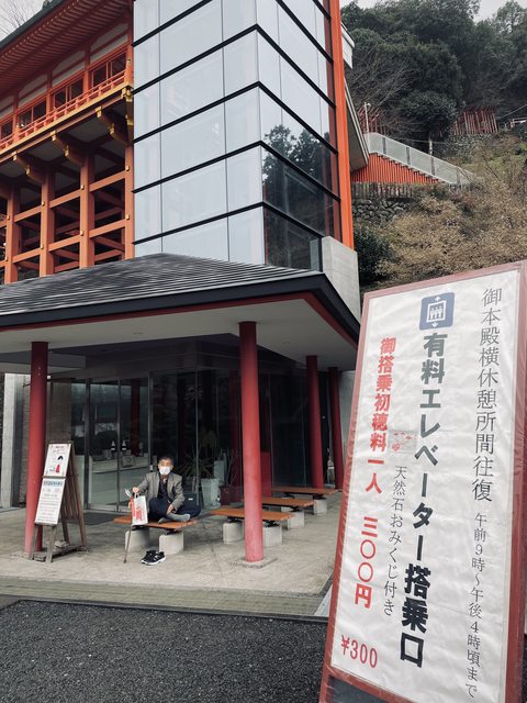 若真的不想花費力氣,或者腿不方便的話,在另一側其實也有付費電梯可以直達本殿