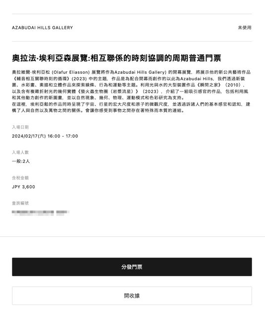 標題[讓售] 麻布台之森開幕展覽門票 2/17