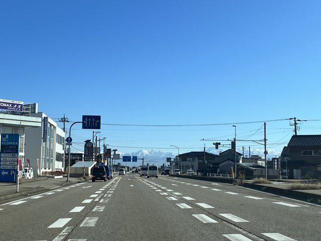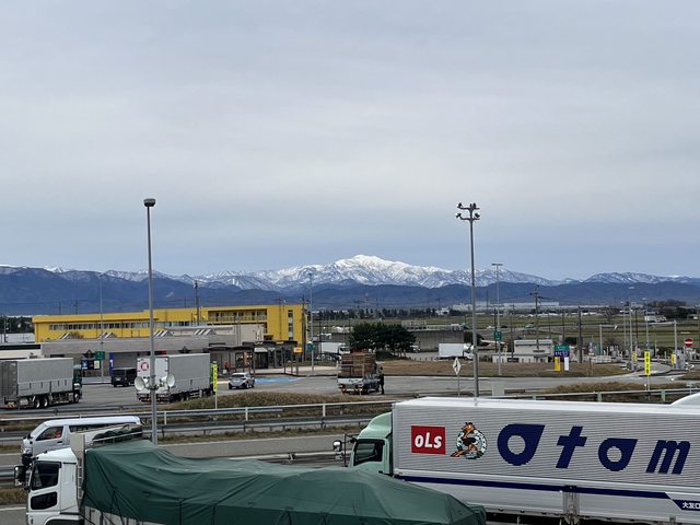 從快速道路穿越金澤後,漸漸的看見若隱若現的立山連峰