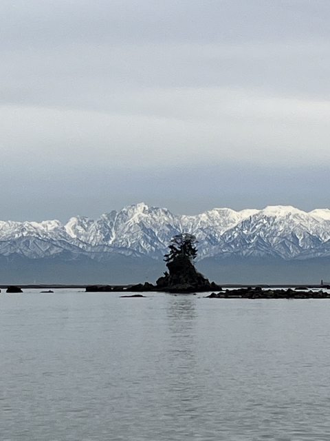 白頭的立山連峰,從雨晴海岸隔著海望過去