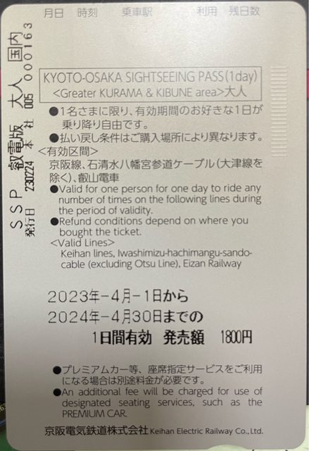 京阪觀光乘車券(鞍馬&貴船地區擴大版)三張